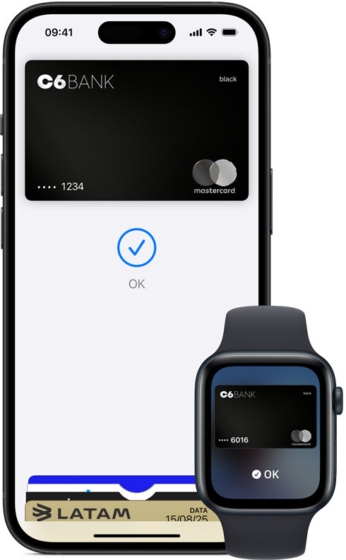 Se quiser adicionar um cartão de crédito, débito ou vale-alimentação direto ao Apple Watch, Mac ou iPad, acesse o Suporte da Apple para saber mais sobre como adicionar seu cartão a outros aparelhos Apple.