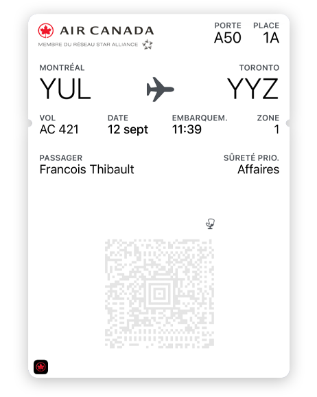 L’app Portefeuille d’Apple vous permet de jongler facilement entre plusieurs cartes. Certaines s’affichent automatiquement en fonction de l’heure et du lieu, comme une carte d’embarquement quand vous arrivez à l’aéroport.