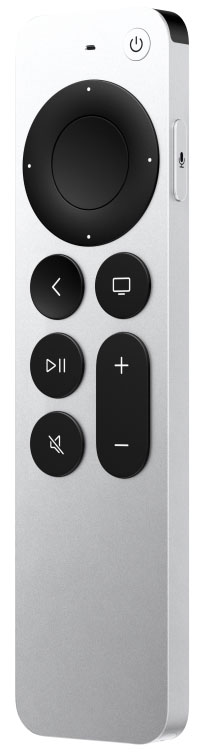 Dotykový clickpad. Snadno si projížděj epizody, scény nebo jednotlivé snímky intuitivním kroužením po clickpadu. Zapni nebo vypni televizi, přepni vstup na Apple TV 4K a ovládej hlasitost.