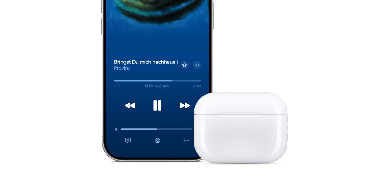 leg sie einfach neben dein iPhone und folge den Anweisungen auf dem Display. Nutze Automatisches Wechseln, um deine AirPods nahtlos mit jedem Gerät zu verbinden, auf dem du gerade etwas anhörst. Du musst nur auf Abspielen drücken.21
