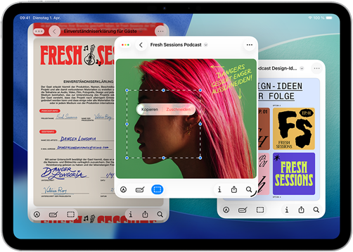 Auf dem iPad ist jetzt viel. Mehr. Möglich. Du kannst deine Dateien auf ganz neue Weise ver­walten, darauf zu­greifen und sie bear­beiten. Und dein iPad auch dann ver­wenden, während es große Dateien ver­arbeitet.