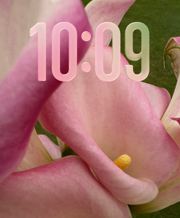 Le superbe affichage de l’heure en Liquid Glass met encore plus en valeur vos photos.