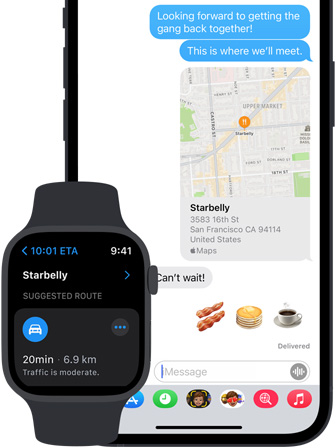 Enjoy a smooth, uninterrupted experience across all the Apple devices you use to get around. Haptic Feedback on Apple Watch nudges you in the right direction so you don’t have to get out your iPhone when you’re on foot. Calendar alerts on your Mac let you know when it’s time to stop working and go. Just say the word, and HomePod finds directions and sends them to your iPhone on your way out the door. And Maps also syncs automatically with Siri, Spotlight, Messages, and Weather to give you relevant information at all the right moments.