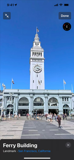Get a whole new perspective on select major metro areas with photo‑realistic, immersive 3D views. Move your iPhone or iPad through space to experience a city from above, or take a closer look at cities and their landmarks in high resolution as you zoom, pan, tilt, and rotate.3 It’s exploration elevated.