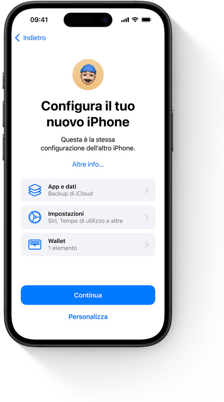 Backup iCloud fa il backup dei dati importanti che hai su iPhone e iPad, incluse le app, in automatico: basta che il dispositivo sia connesso al Wi‑Fi. Così tu non ci pensi più.2