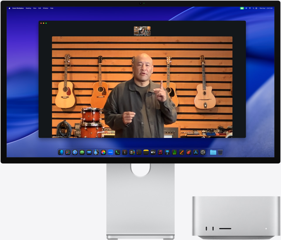 Kamera Center Stage 12 MP, trzy mikrofony klasy studyjnej i system sześciu głośników.