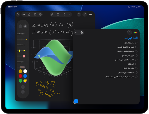 يقدم نظام iPadOS 26 تصميماً خلاباً مع Liquid Glass وتحسينات تقلب الموازين وترتقي بإنتاجية iPad Pro إلى مستوى جديد. كما يمنحك نظام نوافذ مبتكر وسهل الاستخدام قوة ومرونة أكبر من أي وقت مضى. شغّل التطبيقات الاحترافية، واغمر حواسك في الألعاب عالية الأداء، وترجم أفكارك الإبداعية مهما كبرت في تجربة بديهية تعتمد أساساً على اللمس.