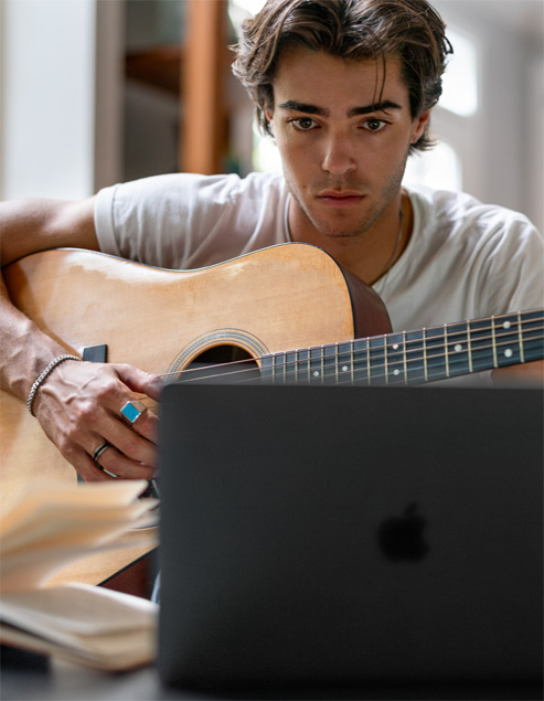 Gelecek vadeden şarkıcı ve söz yazarı Max, stüdyo kalitesinde müzik yapmak için Logic Pro gibi profesyonel uygulamalardan yararlanıyor. Onun uzaktan eğitime MacBook Pro ile nasıl uyum sağladığını öğrenin.